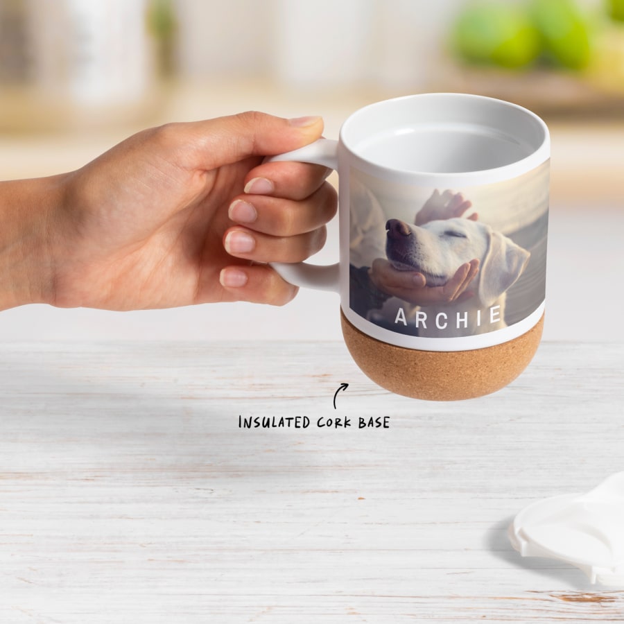 ✔ Premium ceramic with cork base ✔ Comfortable grip & surface protection ✔ Ideal for hot drinks ✔ Perfect for personalisation & gifting