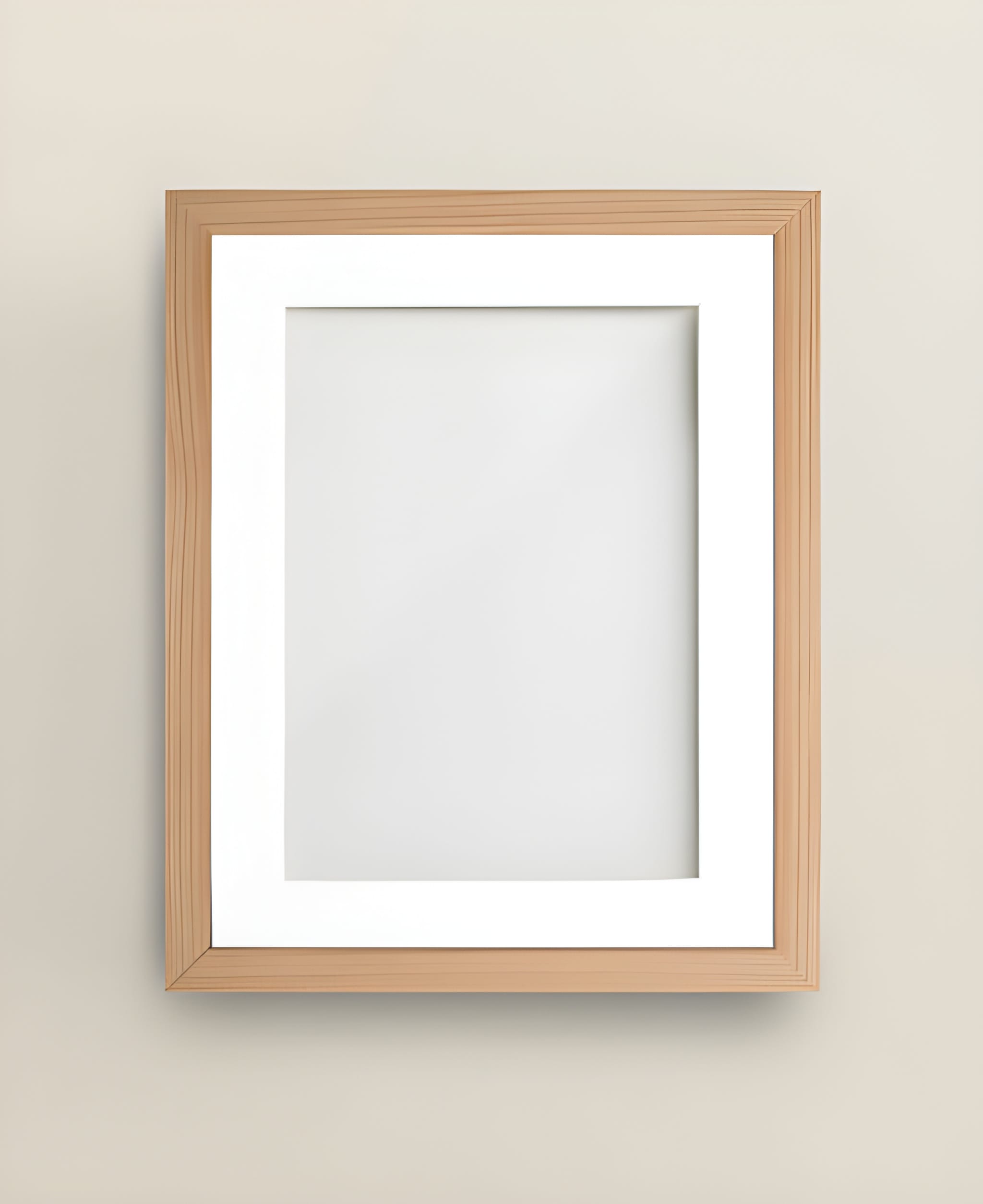 A stylish natural wooden frame with a smooth finish and white mat border, perfect for displaying photos or artwork. Its minimal, modern design complements any space, adding warmth, elegance, and timeless appeal.